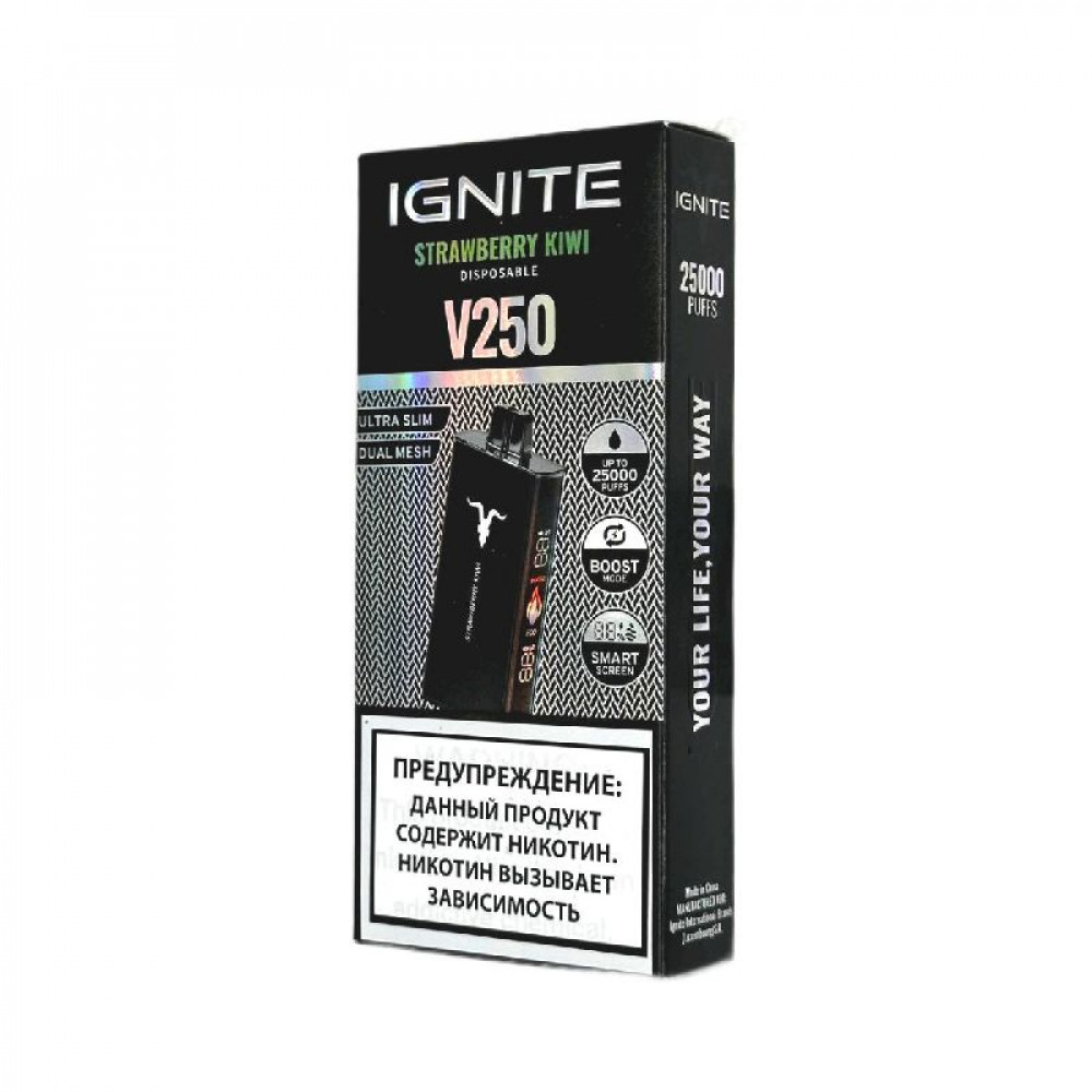Электронная сигарета Ignite V250 Black 25000 - Strawberry Kiwi (Клубника киви) - купить в Кирове